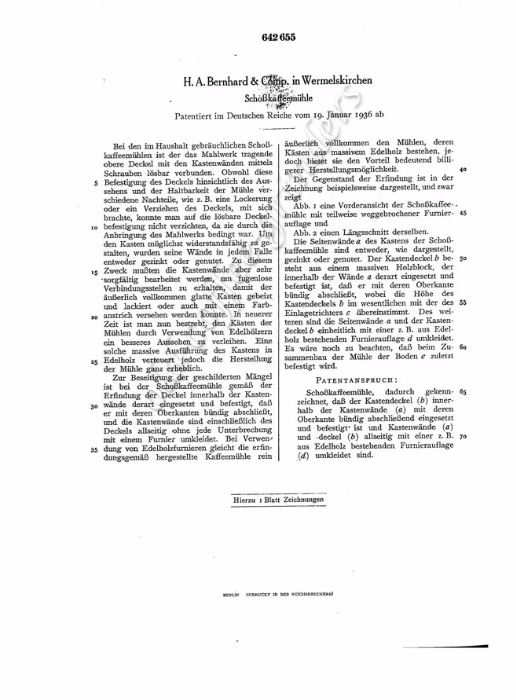 BeHa-Patent Nr. 642655 vom 11.März 1937